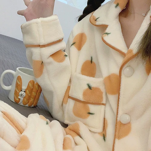 두꺼운 잠옷 여성용 겨울 두꺼운 코랄 플리스 홈웨어 여성용 외출 가능 잠옷 파자마 잠옷 파자마 여성용 잠옷