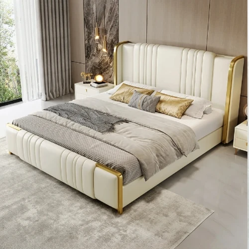 정품 가죽 테크 스마트 침대, 다기능 침대 마사지, 블루투스 스피커, 공기 청정기, 모던 럭셔리 카메라