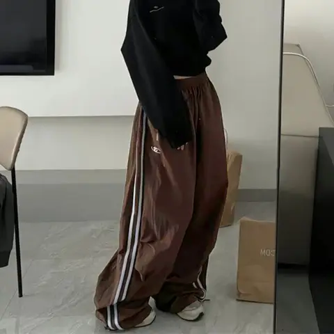 레트로 SweatPant 대형 헐렁한 바지 패션 여성 스트라이프 탄성 허리 포켓 넓은 다리 바지 streetwear 빈티지 y2k 바지