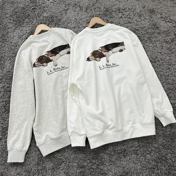 Llbean 공동 인쇄 라운드 넥 느슨한 맞는 긴 소매 탑 남성 여성 커플을위한 일본식 풀오버 스웨터