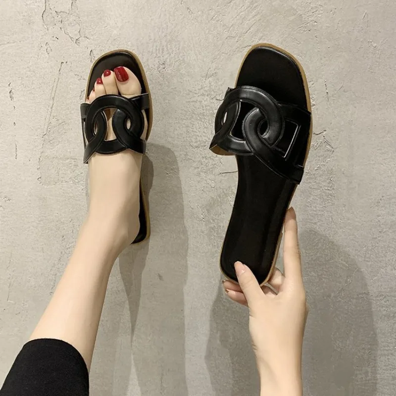 2024 여성 샌들 직조 소프트 솔 슬라이드, 야외 여성 캐주얼 플랫 비치 슬리퍼, 패션 여성 신발, 여름 신상