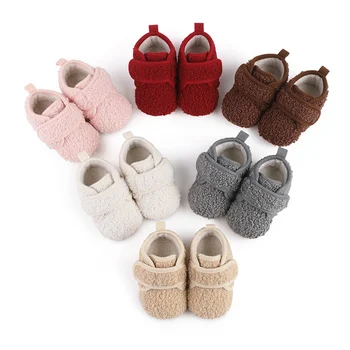 겨울용 따뜻한 아기 신발, 부드러운 미끄럼 방지 워킹 슈즈, 유아 봉제 바닥 양말 신발, 실내 가정 어린이 슬리퍼