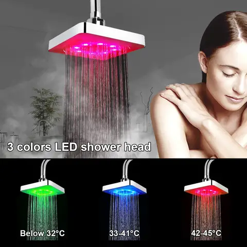 초저소음 3색 온도 센서 강우량 상단 스프레이 7색 점진적 변화 사각형 고정 샤워 헤드 LED 샤워 헤드