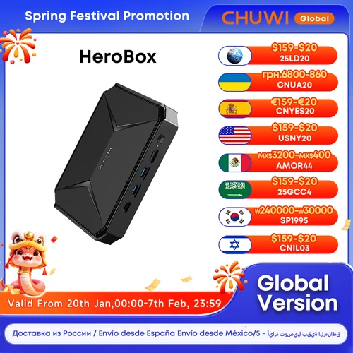 CHUWI Herobox 미니 PC 인텔 N100 UHD 그래픽, 12 세대 윈도우 11, 8GB RAM, 256G SSD, 와이파이 6 블루투스 5.2, VAG 포트 포함 |